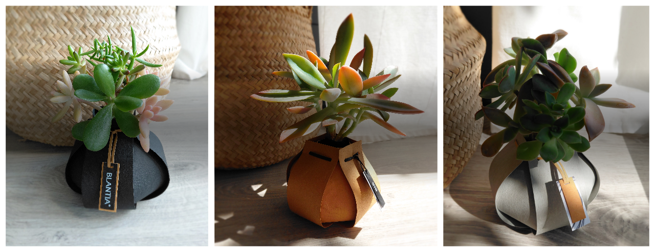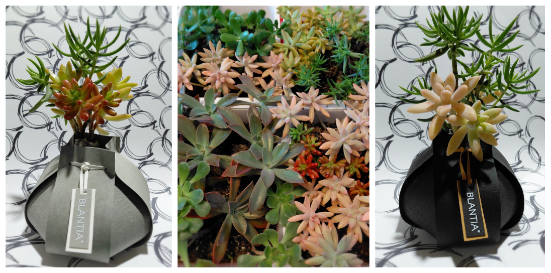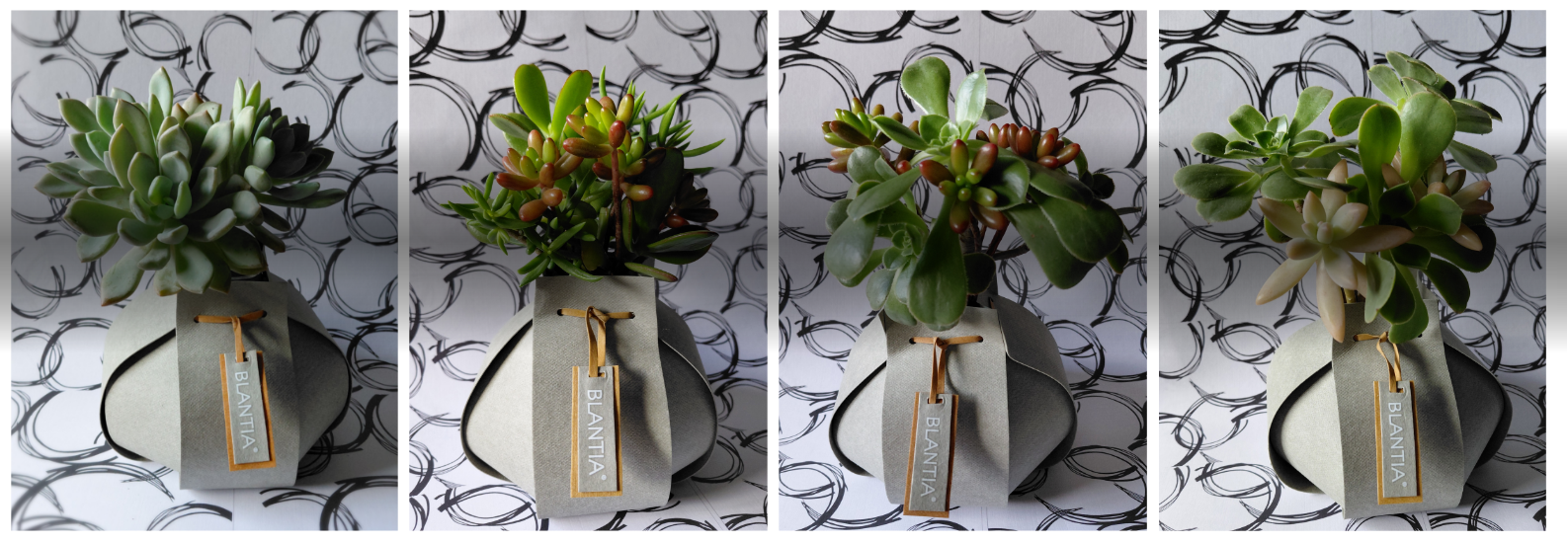 As Blantias da Gama TERRA são diferentes, são para serem plantadas. Em tamanho pequeno ou médio, vendidas num saco biodegradável, permitem a colocação das plantas na terra sem que este se desfaça. Esta embalagem possibilita fazer arranjos em vaso, testar diferentes combinações sem que as Blantias se desfaçam. Passado algumas semanas o saco degradar-se-á na terra.